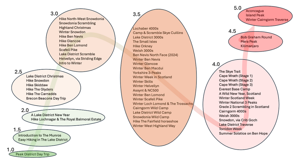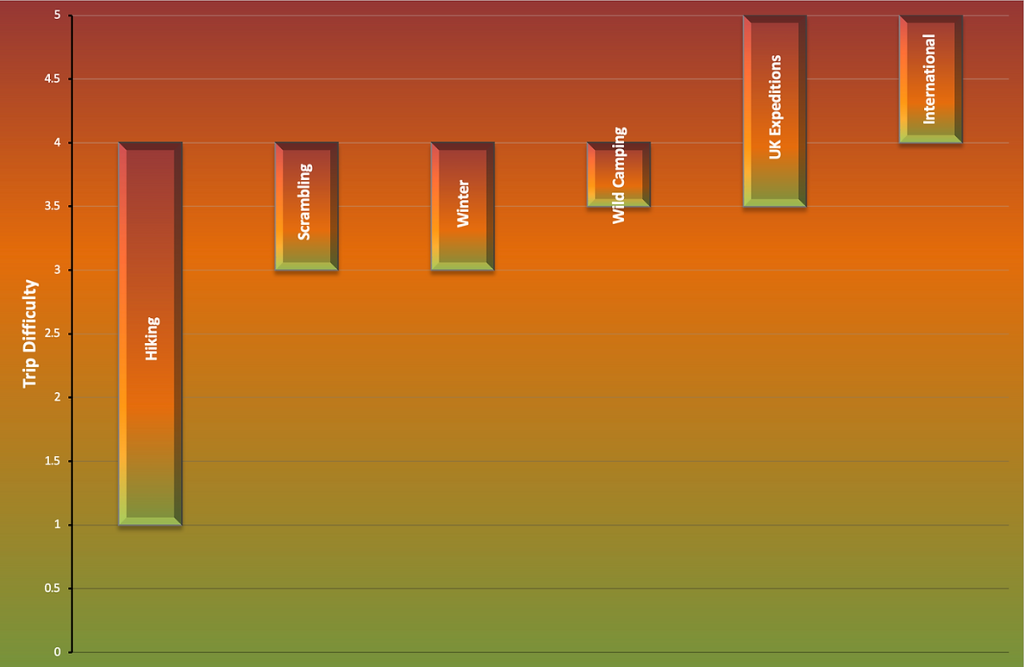 A simple 1–5 difficulty rating, built on real feedback from asking over 1,000 participants who’ve joined more than one City Mountaineering trip.