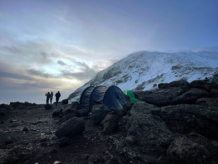 Resting in our tents, we watched the skies nervously as snowflakes slowly started to fall. We learned afterwards that the guides had considered cancelling the summit attempt because of the weather, but Luckily it started to clear, and we were on!
