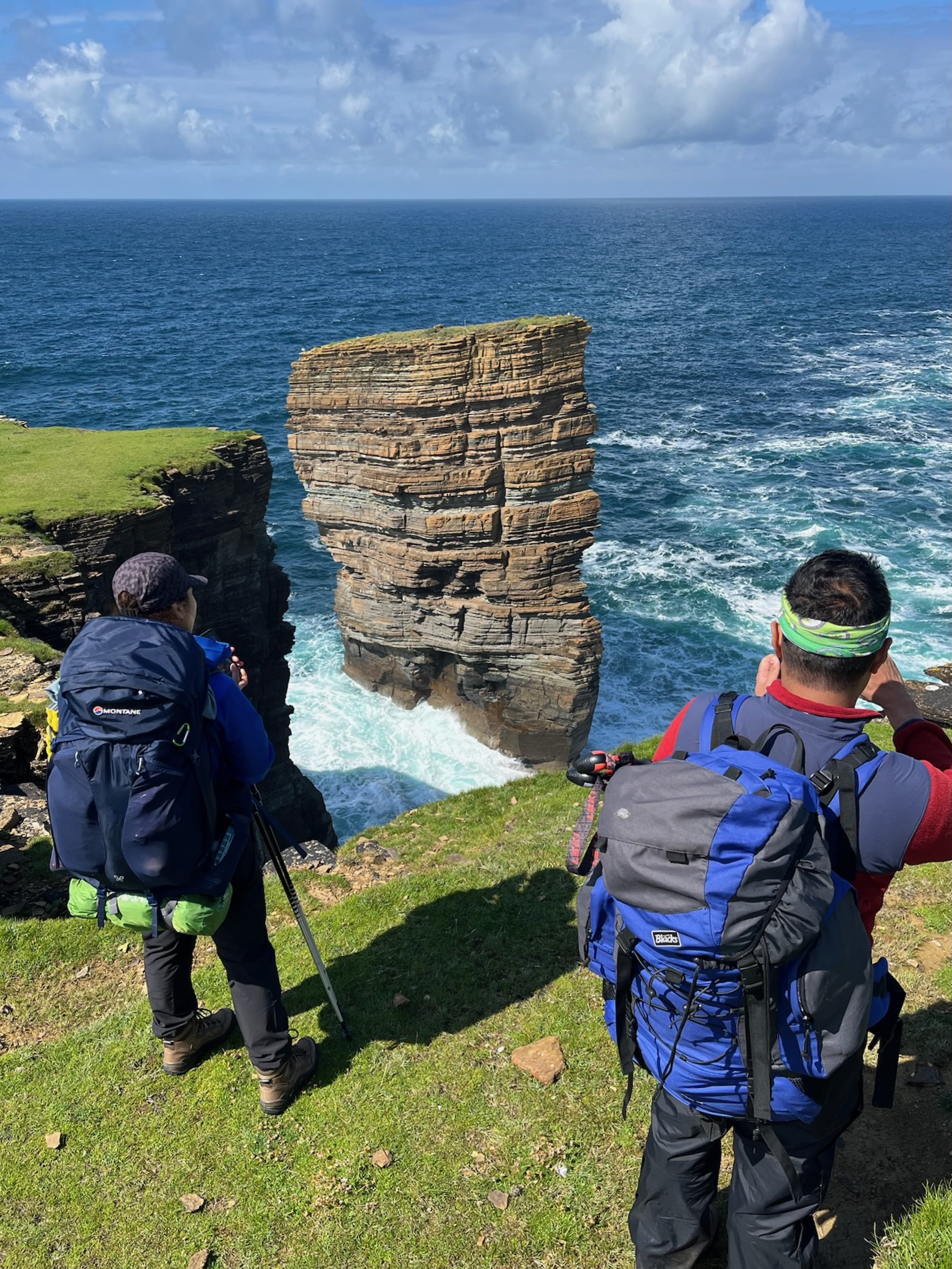 Great way to explore Orkney! – both its natural landscapes, and the historical sites. This 10 day trip involved 4 nights of wild camping, 2.5 days of hiking with a full pack, remaining days hiking with day packs (thanks to van support!) and 4 ferry rides. We really lucked out on the weather, missing storm Floris by a day. Spent plenty of time admiring the wildlife; hares, horses, puffins, seals, dolphins..! I love the structure of City Mountaineering trips – small group of 9 like-minded people, a qualified mountain guide who leads and takes care of everyone, a well thought out itinerary, and road/ferry transfers. It gives me the opportunity to mentally switch off and really enjoy being present in nature. Thank you Stu and Jonathan for such a lovely trip!